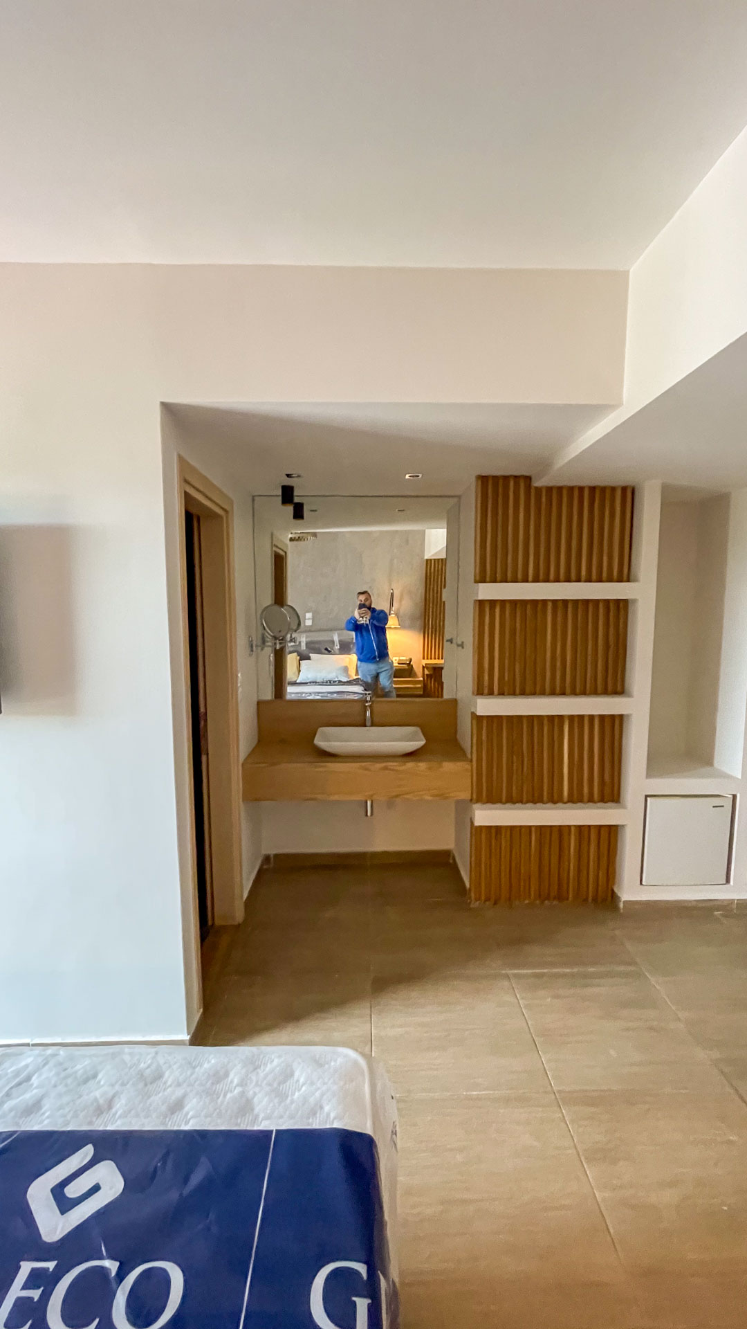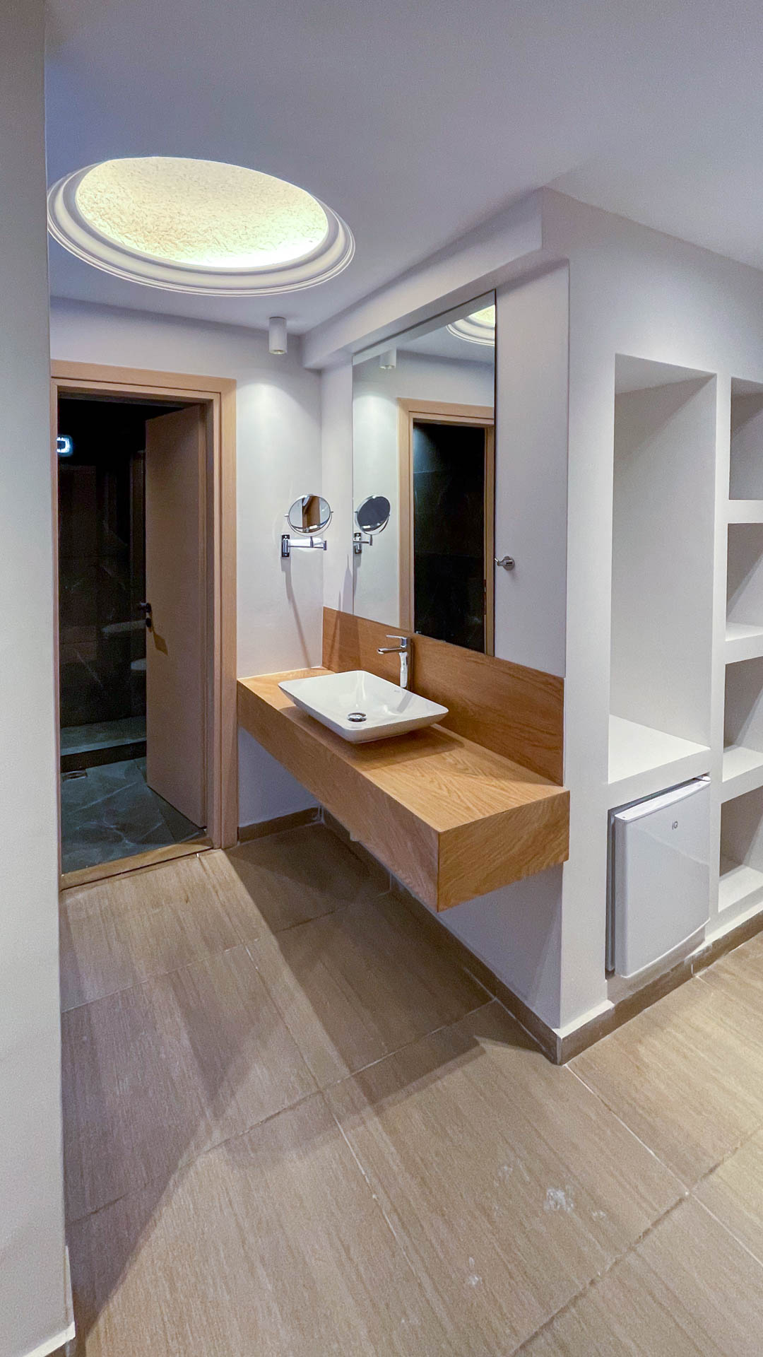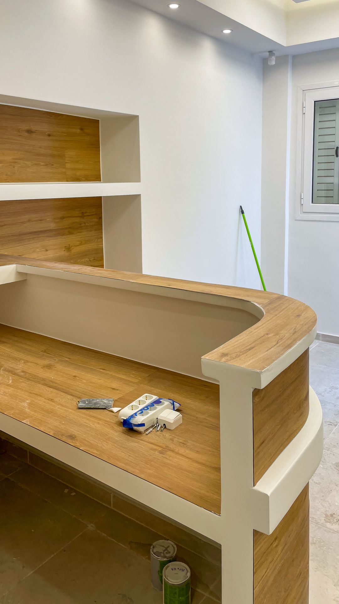 - Ειδικές Κατασκευές: Ράφια, βιβλιοθήκες, επενδύσεις τζακιών και καμάρες που ακολουθούν την κυκλαδίτικη γραμμή.