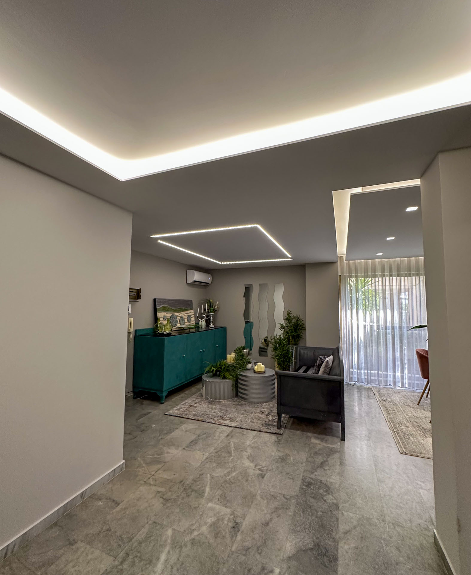 - Ψευδοροφές & Κρυφός Φωτισμός: Δημιουργούμε μοναδική ατμόσφαιρα με μοντέρνα σχέδια και ενσωματωμένο φωτισμό.